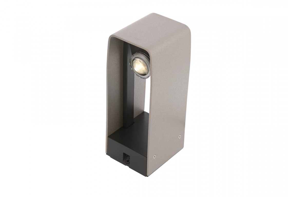 Staande lamp ACE geeft een mooi strijklicht dat geschikt is voor het verlichten van een pad of oprit. Het armatuur is ongeveer 20 cm hoog en de lichtbron in het armatuur is kantelbaar waardoor de bundel verstelbaar is.Specificaties