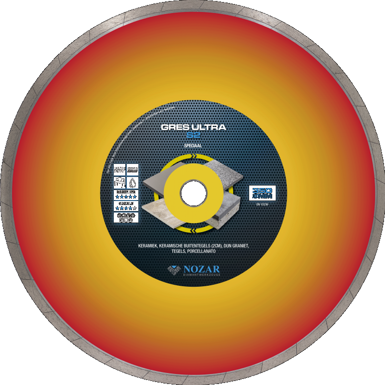 De GRES ULTRA S2 is een premium diamantzaagblad voor keramische terrastegels. Voor een perfecte kartelvrije zaagsnede in moeilijk te verwerken materiaal, doorlopende diamant belegging en verkrijgbaar in diverse diameters. Hoveniers en stratenmakers zullen versteld staan van dit product, het afwerkingsniveau is geweldig! Terras en tuintegels leggen wordt steeds makkelijker. De diamantsegmenten zijn bijzonder om snel te kunnen werken. Hardsteen, keramiek met beton en dunne keramische tegels zijn geen enkel probleem! Zagen met de GRES ULTRA S2 is premium werken.Specificaties