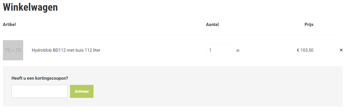 Deze kortingscode kan worden ingevuld wanneer de artikelen in de winkelwagen zijn geplaatst.